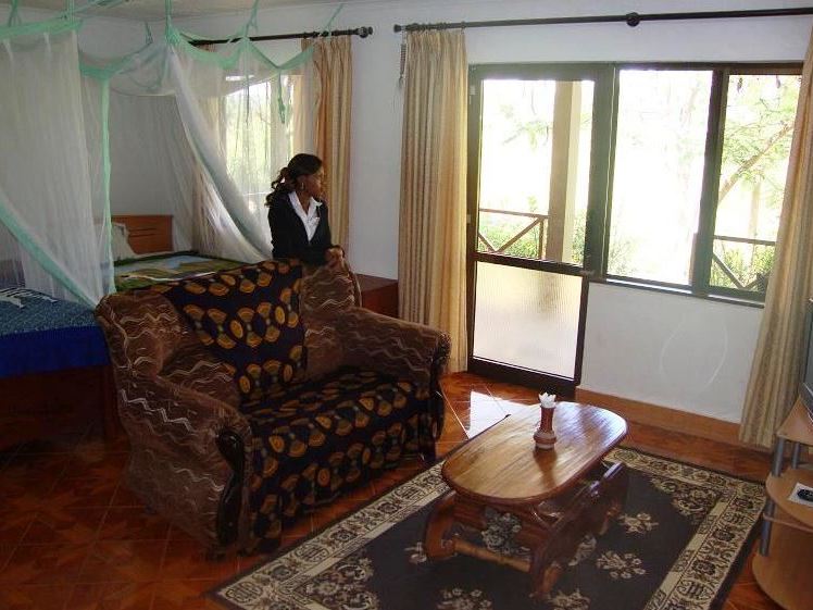 Nice lodge, basic middle class, located just outside Mikumi National Park in southeastern Tanzania. The lodge has rooms in a main building and in small cottages (bungalows) in a small area right next to the gate at Mikumi National Park. The lodge is nice and well maintained, child friendly and very affordable. All rooms have real beds, shower, toilet and a small porch.